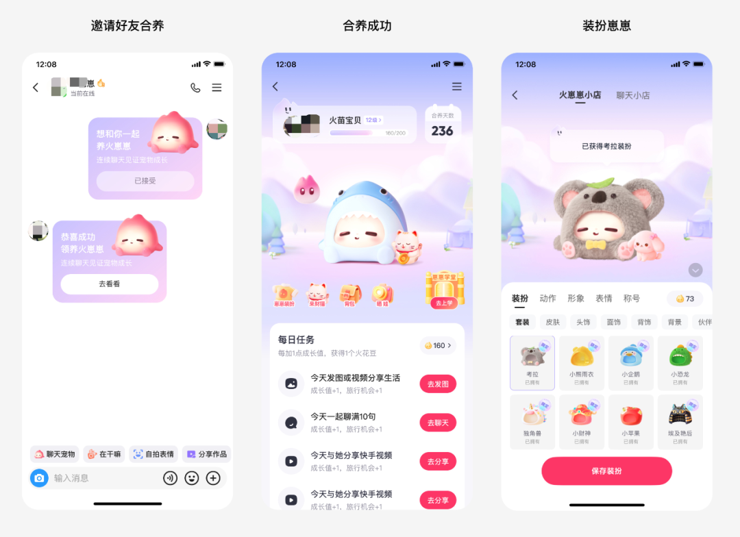 至此,火崽崽已不仅是一个可互动的虚拟宠物,也不仅是用户亲密关系的载体,而是逐渐构建起了一个自然生成的“社交场”。