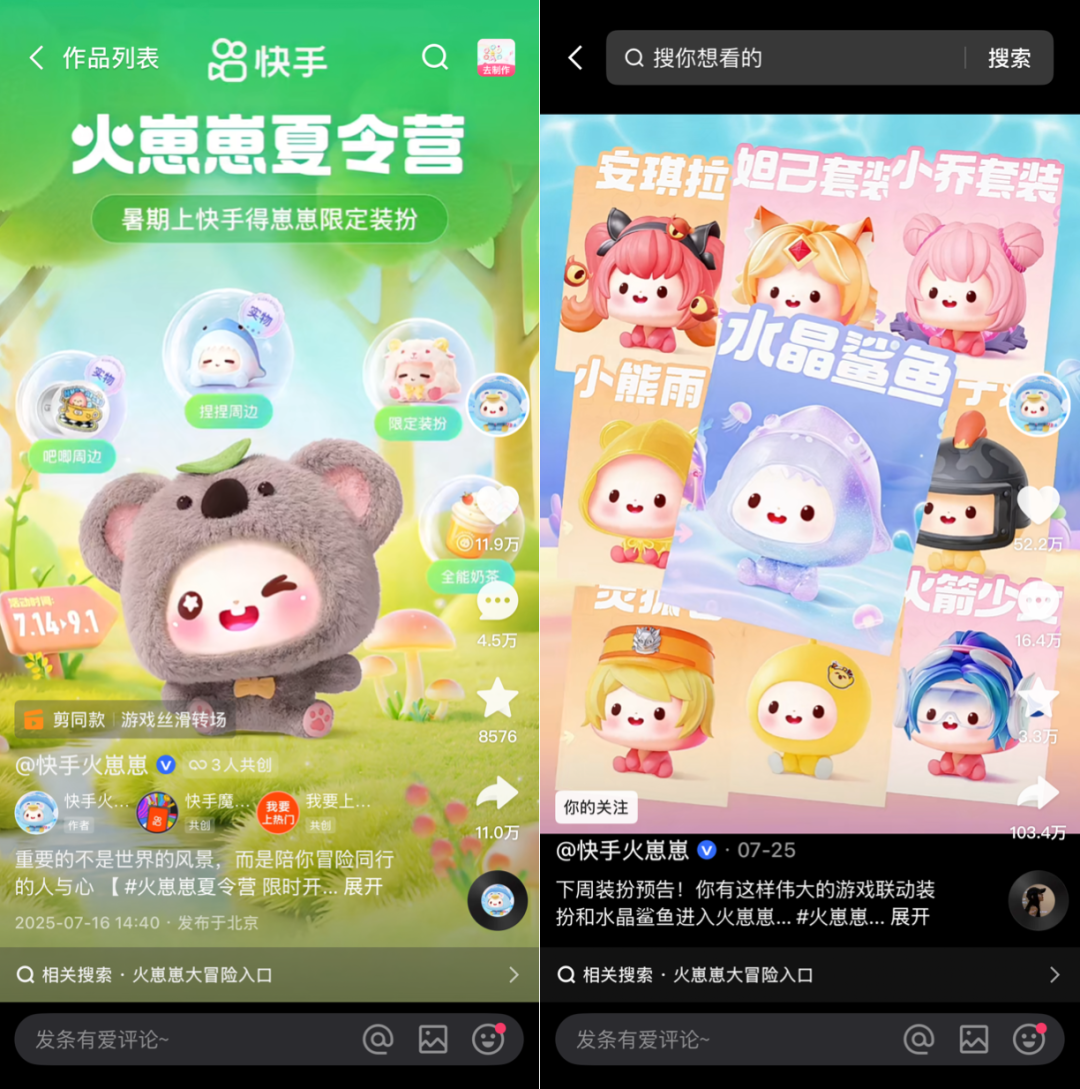另一方面,作为生长在短视频内容平台里的虚拟宠物,火崽崽天然被赋予了强“内容属性”,它会被表达、分享、讨论,甚至能激发用户进行二次创作的素材与话题。这使得火崽崽得以突破传统虚拟宠物的局限,从一个单纯的养成对象演进为一个可以不断填充内容、赋予新意的活态IP。